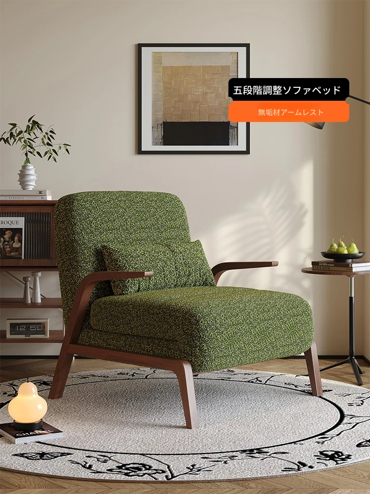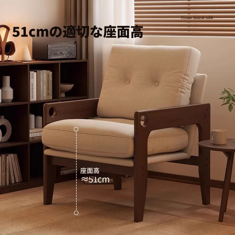 リビング用シングルソファチェア - 高級感溢れる軽やかなデザイン!小さなスペースにもぴったりな中古風の実木製。リラックスしたい寝室や家の独立した空間にも最適です。あなたの生活空間を格上げする一品!