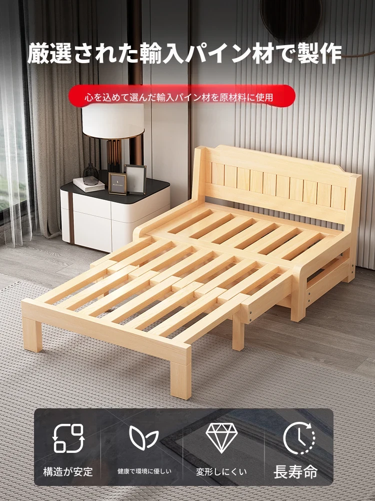 折りたたみ可能な無垢材製ソファベッド!家族みんなに最適な多機能伸縮ベッド。リビングにぴったりなシングル&ダブル対応、1.5メートルのスライド式無垢材ベッドで、快適な空間を演出します。