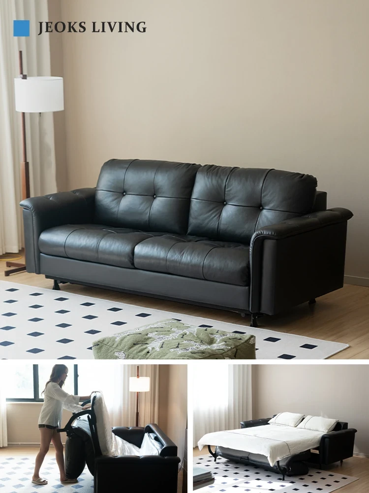 ジョークス/シンイン影ソファベッド 本革レトロデザイン 小型居住空間に最適な一級牛革製 折りたたみ式2WAYソファ リビングにぴったりなラグジュアリー感を演出!