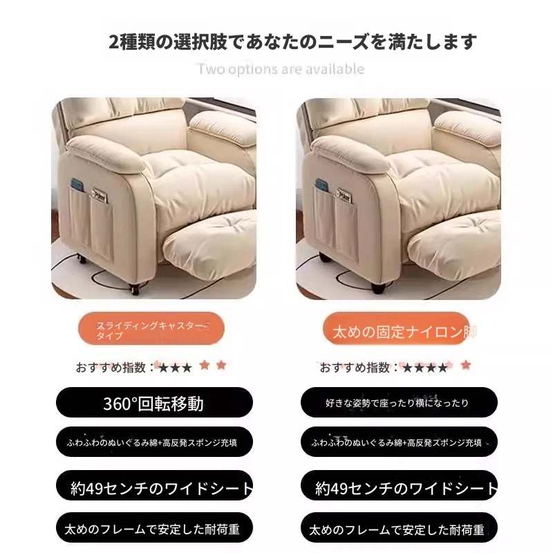 新作!リラックスできる懶人ソファ - 家庭用バルコニーに最適な背もたれ付き、シングル&リクライニング機能搭載の快適ソファチェア。寝室やリビングでくつろぎのひと時をお楽しみください!