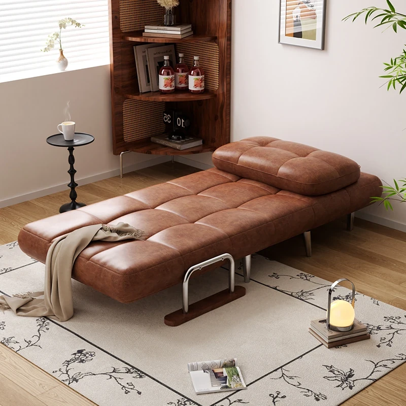 ナパ本皮ソファベッド - 中古風デザインの折りたたみ多機能カウチソファ!リビングにぴったりの収納付き、座る・寝る両方に対応。快適な空間を演出し、スタイリッシュなインテリアを実現します。
