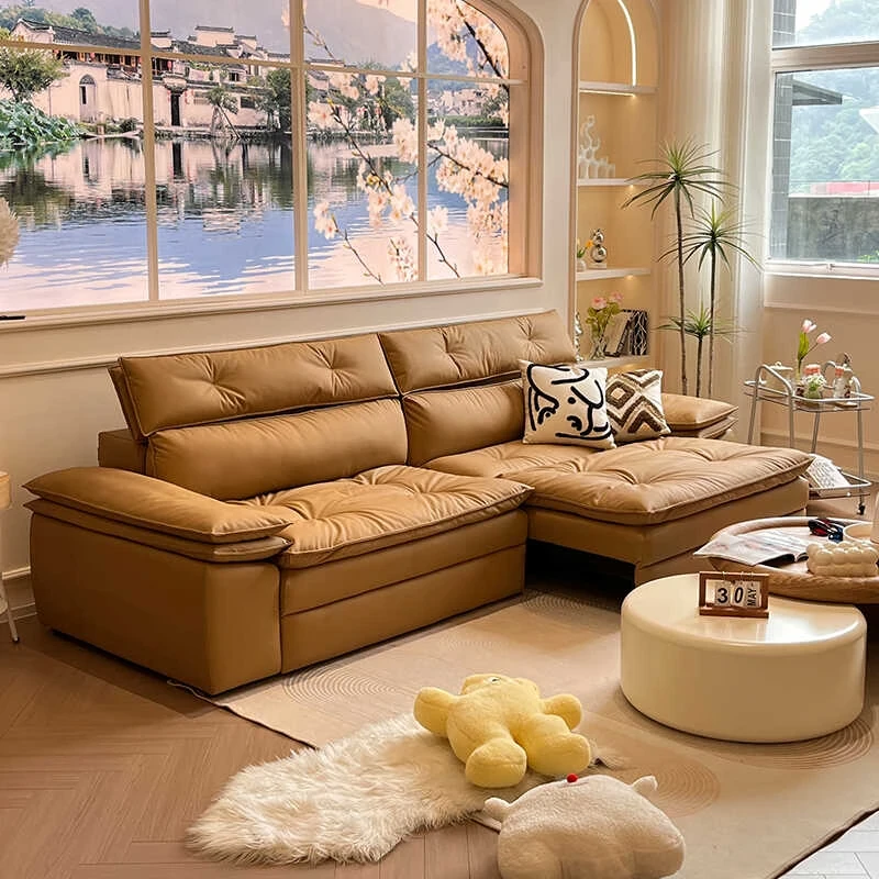 多機能電動本革ソファ|省スペース高級リビング用|壁に寄せられるベッドソファ|快適な二役を兼ね備えたスタイリッシュな小型ソファ!