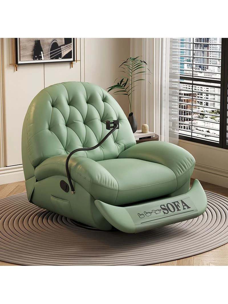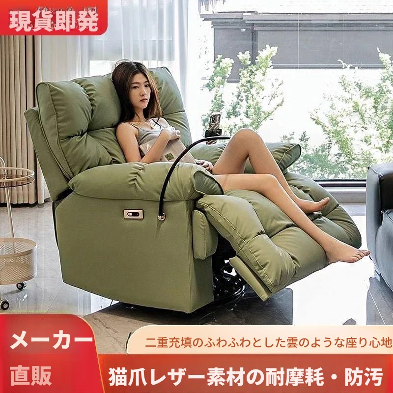 軽やかな贅沢感!多機能スペースキャビン型電動リクライニング一人用ソファ。おしゃれなリビングにぴったりの、揺れ動き回転自在なリラックスチェアで、快適なくつろぎタイムを実現!