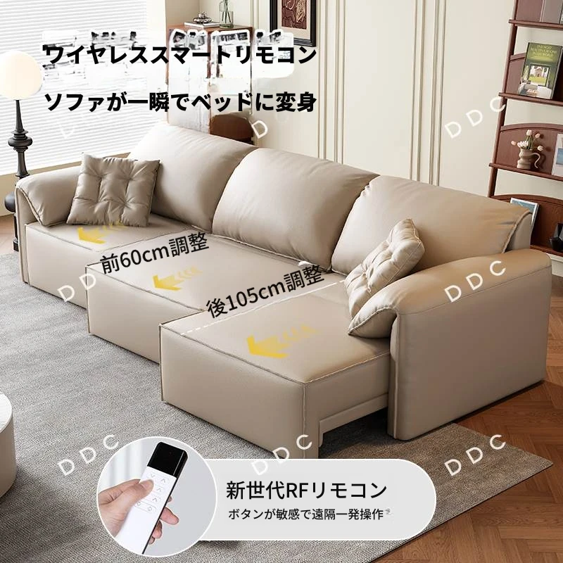 DDC大象耳デザイン電動ソファ - シンプルでモダンなリビングに最適!小型住宅にもぴったりな真皮製、快適さとスタイルを兼ね備えた多機能ソファ。