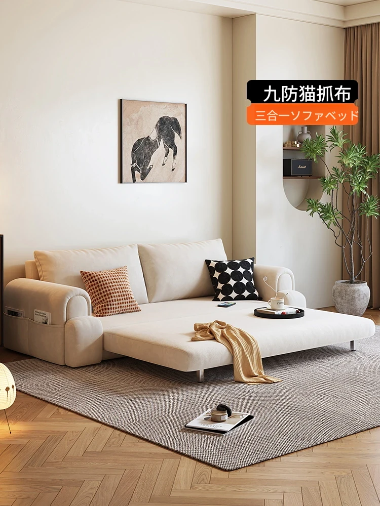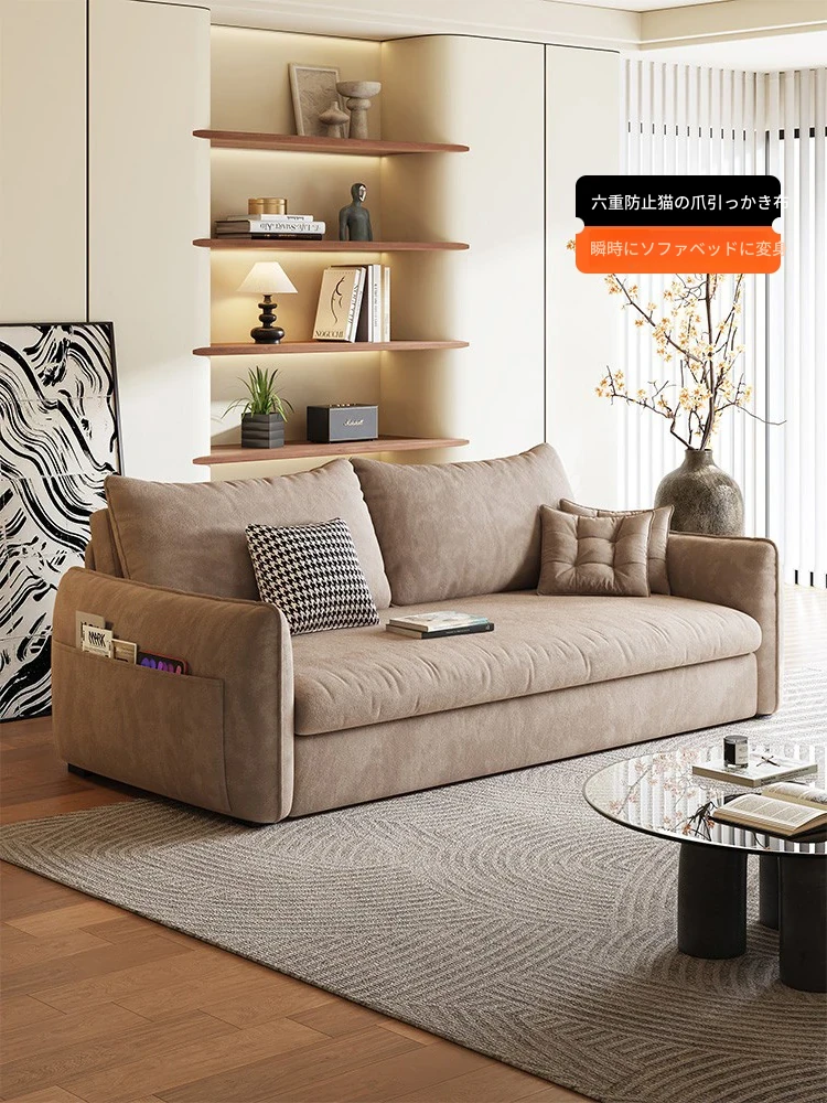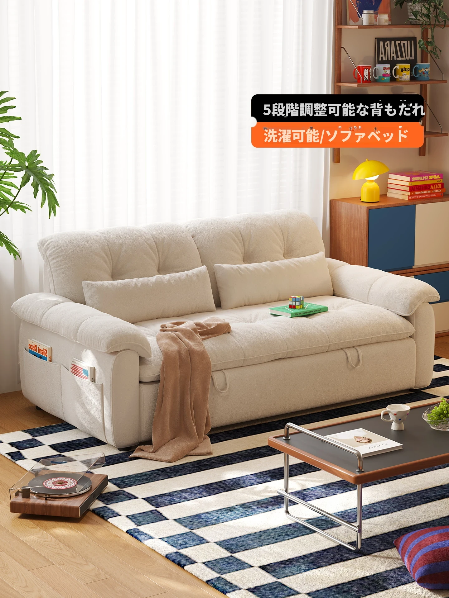 折りたたみ式ソファベッド!小型リビングに最適な多機能デザイン。新しいスタイルのシンプルな無垢材とテクノロジー布製で、収納スペースも充実。快適な空間を演出します!