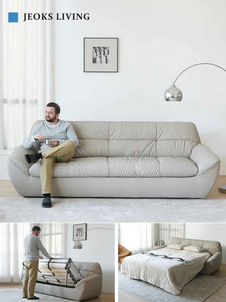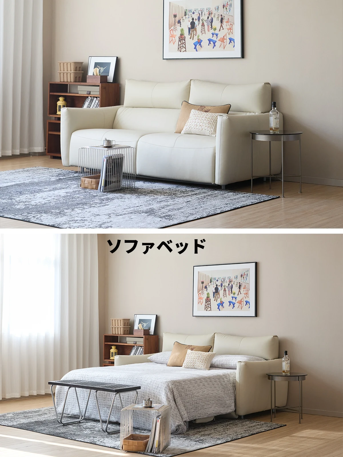 イタリアンラグジュアリー!本革製マルチファンクション・ソファベッド、リビングにぴったりのエレガントなデザイン。大きなサイズで快適な寝心地、優雅な象耳デザインでおしゃれな空間を演出します!