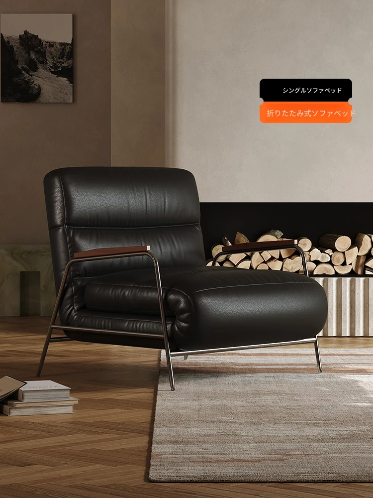 木宮匠のオーウェンソファベッド - 一人用の折りたたみ式2WAYソファベッド。小さなリビングや書斎に最適!高級感あふれるレザー仕上げで、快適な睡眠空間を提供します。限られたスペースでもスタイリッシュに!
