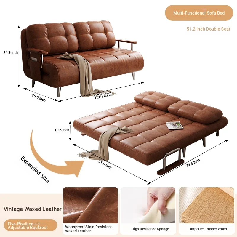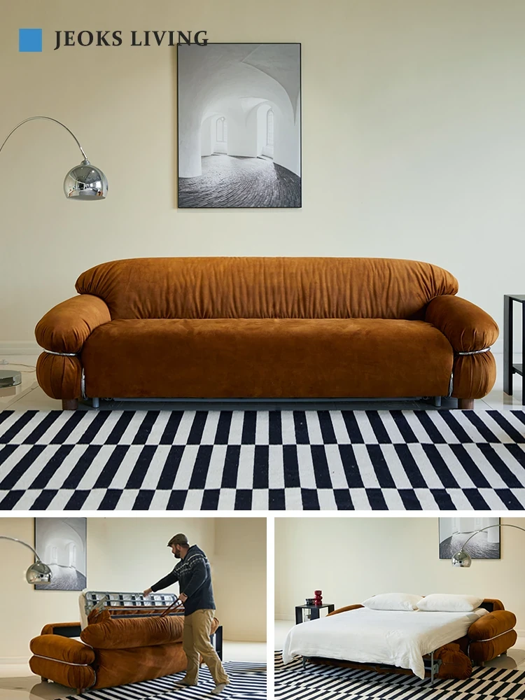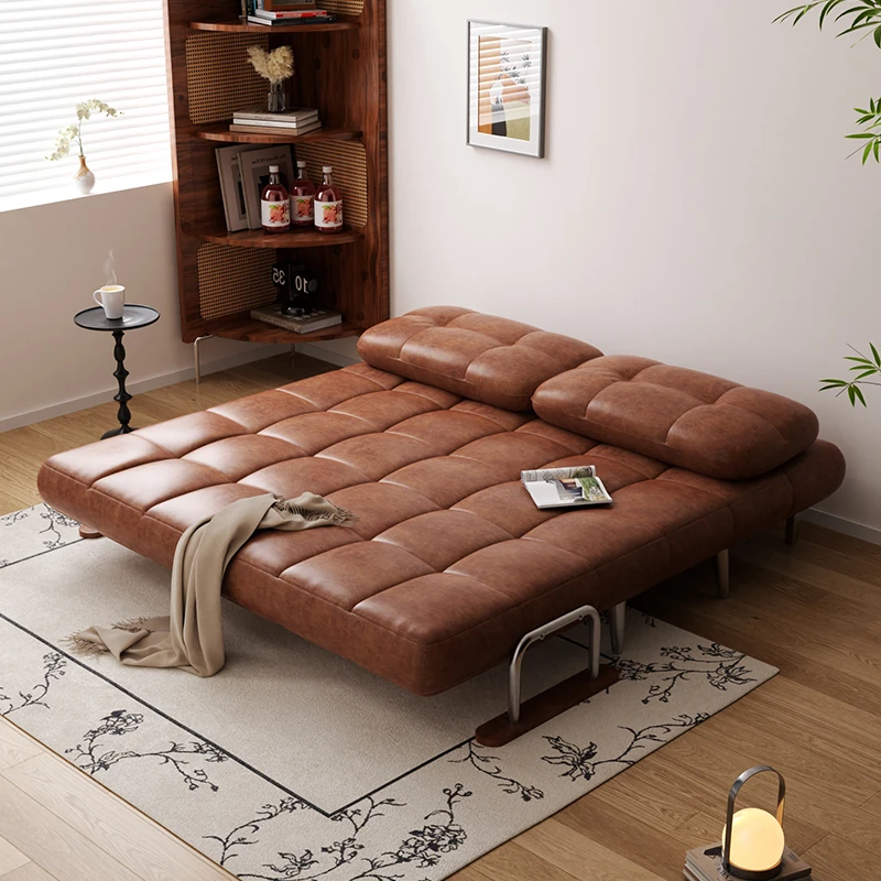 JOKES/Wutong Retro Designer Foldable Sofa Bed with Steel Frame - Vintage Style Multifunctional Living Room Furniture, Perfect for Small Spaces!