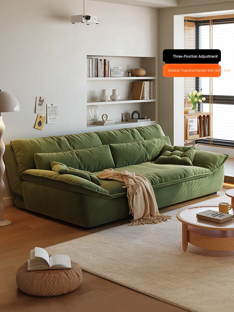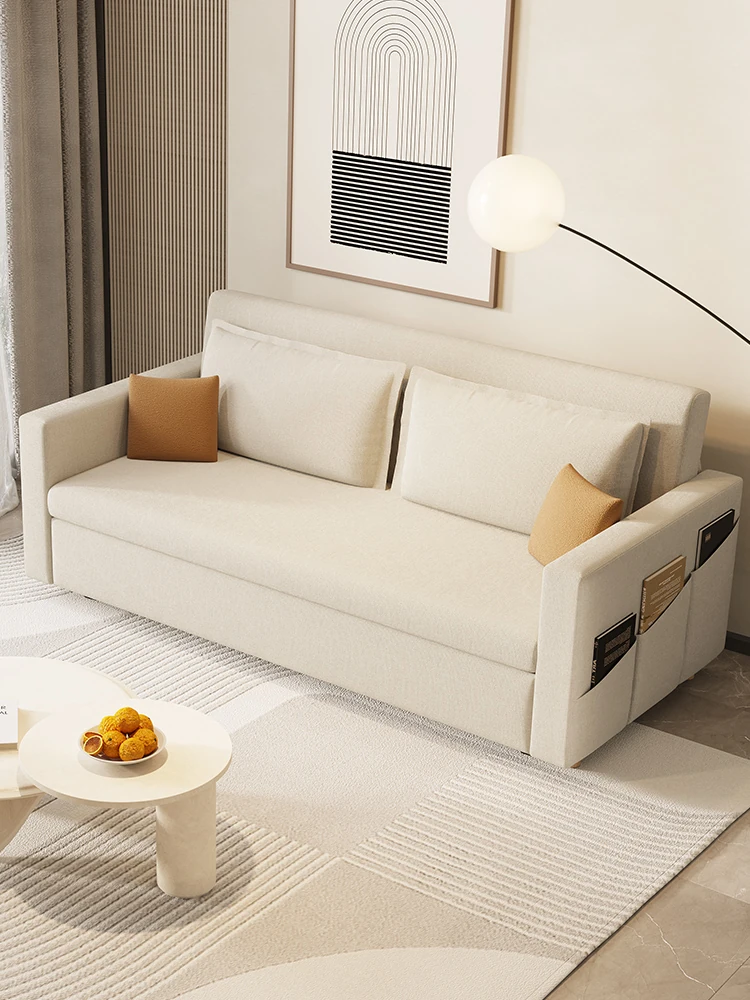 Modern Minimalist Cream Sofa Bed - Multifunctional Pull-Out Couch for Small Living Rooms, Double-Sided Folding Bed for Stylish Comfort and Space-Saving Solutions.