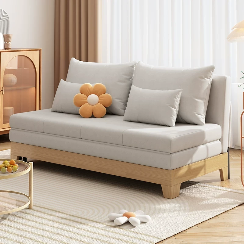 Modern Minimalist Solid Wood Sofa Bed - Foldable, Multi-Functional, Perfect for Small Living Rooms, Stylish Double Sofa Bed for Trendy Spaces