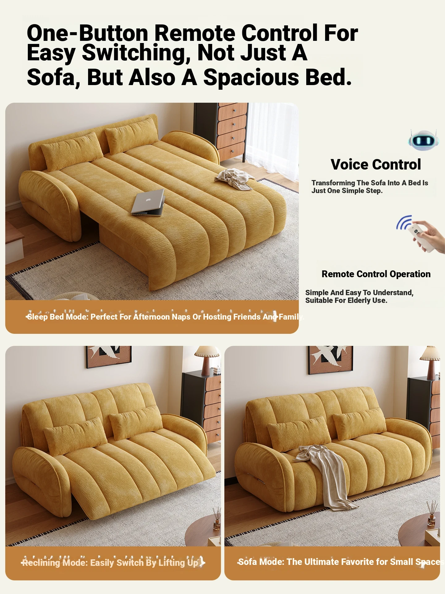Mugong Craft Premium Electric Adjustable Pumpkin Sofa – Multifunctional Foldable Sofa Bed for Small Spaces, Perfect for Lounging and Sleeping!